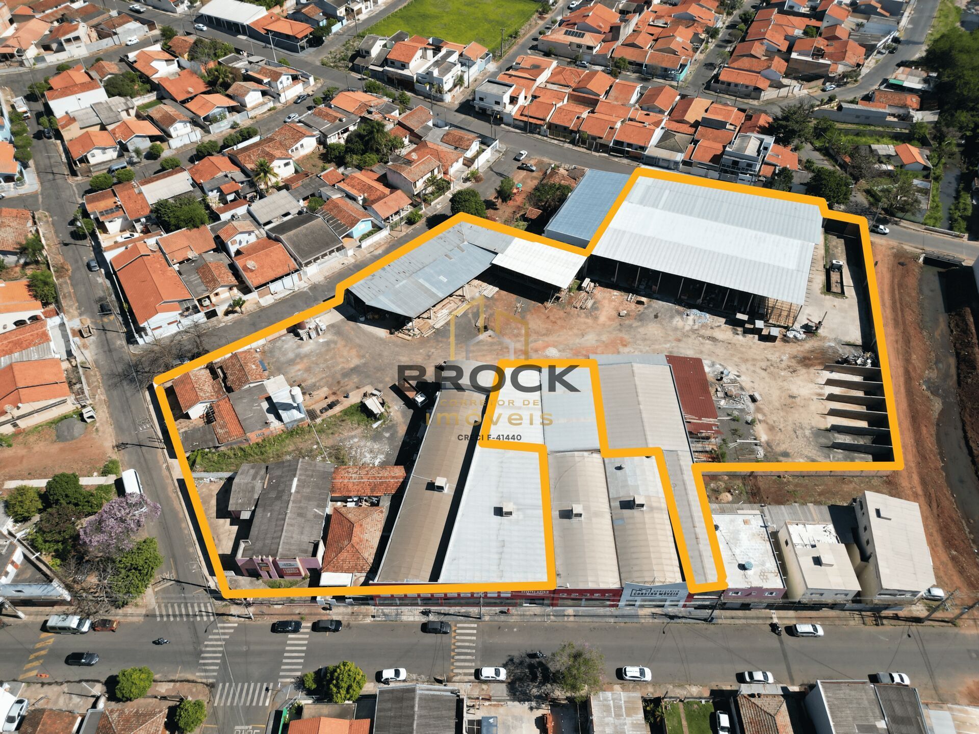 Área de 9.500 m² estrategicamente localizada, com diversos barracões comerciais prontos para uso.